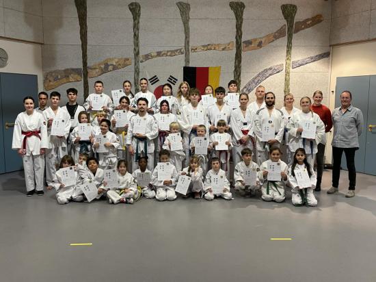Am Sonntag, 07.12.2025 zeigten die Schülerinnen und Schüler der Taekwondo Schule Klebach aus Offenburg-Albersbösch erneut ihr Können bei der anspruchsvollen Gürtelprüfung. Alle Teilnehmenden durften sich am Ende über die bestandene Prüfung und ihren neuen Gürtel freuen. Das Prüfungskomitee war mit den Leistungen der kleinen und großen Anwärter sehr zufrieden. Es setzte sich zusammen aus Trainer Patrick Klebach (6. Dan), Fabio Kornmeier (3. Dan) und Sabrina Eggs (5. Dan).